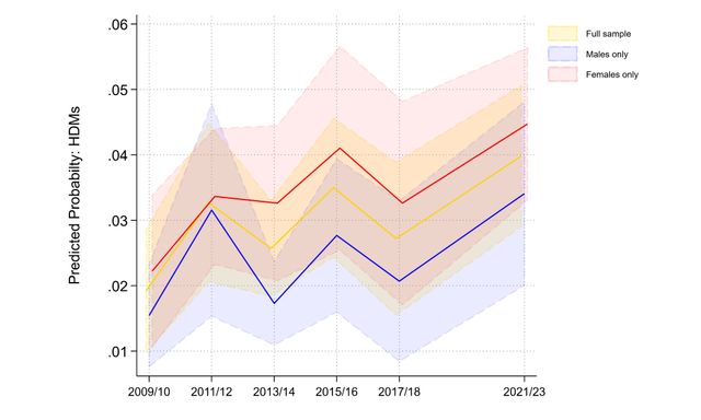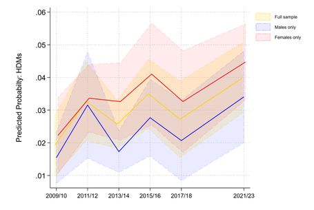 The gallery below displays some of our most recently published figures. All figures were created by Dr. Storz in Stata (StataCorp. 2025. Stata Statistical Software: Release 19. College Station, TX: StataCorp LLC.). Dr. Storz always aims to expand his graphic portfolio by using state-of-the-art, user-written Stata packages such as "Combomarginsplot" (Nick Winter, 2014. "COMBOMARGINSPLOT: Stata module to combine the saved results from multiple calls to margins into one marginsplot," Statistical Software Components S457804, Boston College Department of Economics, revised 12 Nov 2021), "Coefplot" (Ben Jann, 2013. "COEFPLOT: Stata module to plot regression coefficients and other results," Statistical Software Components S457686, Boston College Department of Economics, revised 22 Aug 2025) or "Tabplot" (Nicholas J. Cox, 1999. "TABPLOT: Stata module to show table of frequencies as table of bars," Statistical Software Components S370601, Boston College Department of Economics, revised 09 Apr 2022).