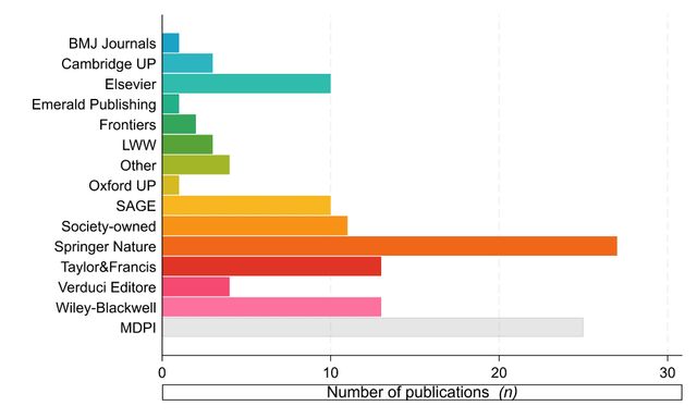 Figure 1 displays peer review activities in scientific journals. Figure 2 displays the publishers we published with in the past years. Figure 3 maps our research activities in a larger context. Figure 4 summarizes author metrics. Obtained via: Harzing, A.W. (2007) Publish or Perish, available from https://harzing.com/resources/publish-or-perish